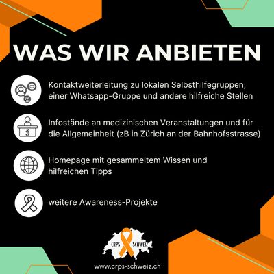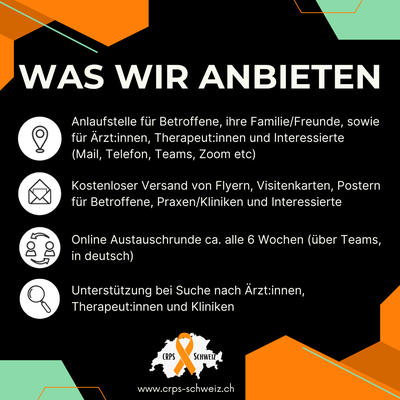 Wir sind eine Gruppe von Personen (CRPS-Betroffene, Angehörige/ Freunde und Interessierte), die sich es zur Aufgabe gemacht haben, CRPS in der Schweiz bekannter zu machen. Ausserdem bieten wir einiges an für Betroffene, deren Angehörige, am Thema interessierte und alle anderen.